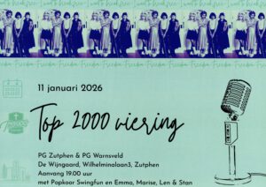 De Protestantse Gemeente Zutphen en de Protestantse Gemeente Warnsveld/Leesten houden dit jaar samen een Top 2000 dienst. Er is live muziek van een band, een pianist en natuurlijk van popkoor SwingFun.